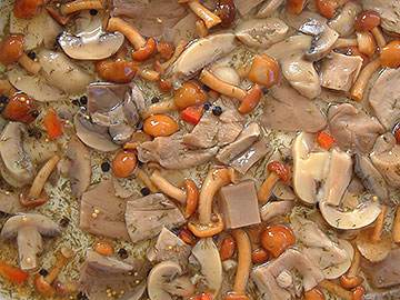 Nameko, champignons (sliced), Oyster (sliced),Shiitake (sliced), straw mushrooms (half) |